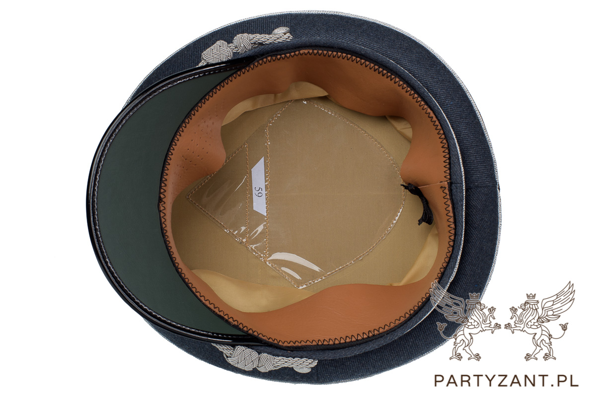 - LW type visor made of high-gloss black leather, edge hemmed, underside in blaugrau color