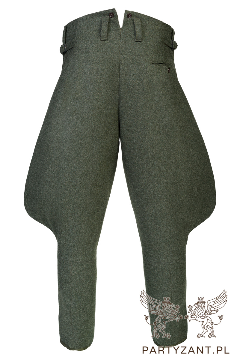 Doskonała replika niemieckich bryczesów oficerskich z okresu II Wojny Światowej. Wykonane z najwyższej jakości materiałów, perfekcyjnie wykończone - zgodnie z oryginalnymi wzorami.