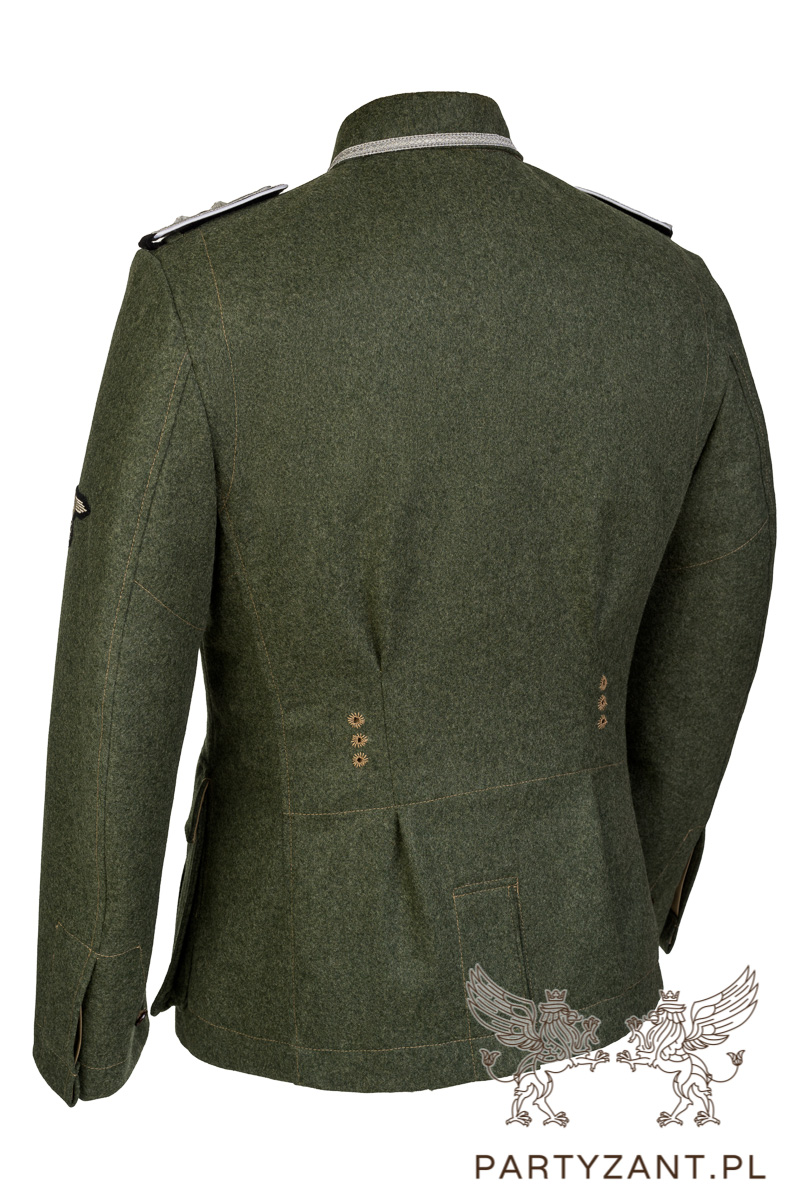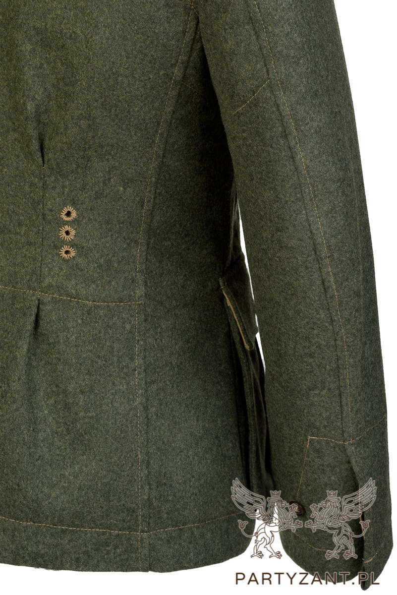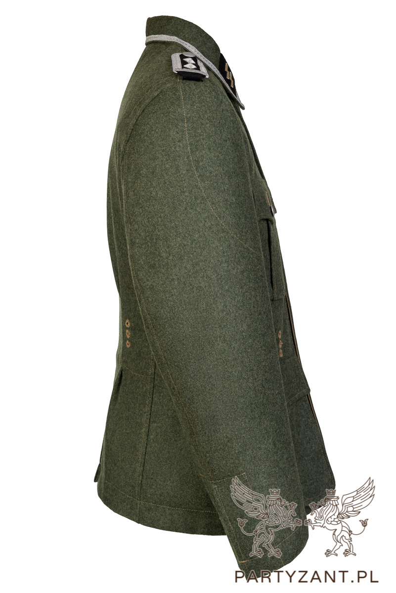 - Materiał: sukno w kolorze feldgrau (sukno oraz nici wyprodukowane na nasze zamówienie w bawarskiej fabryce produkującej materiały na potrzeby mundurów podczas II wojny światowej)