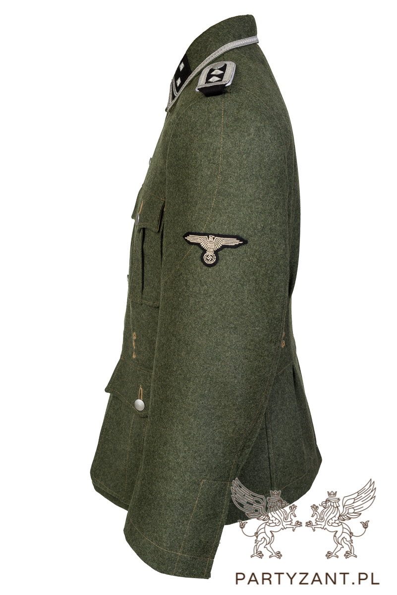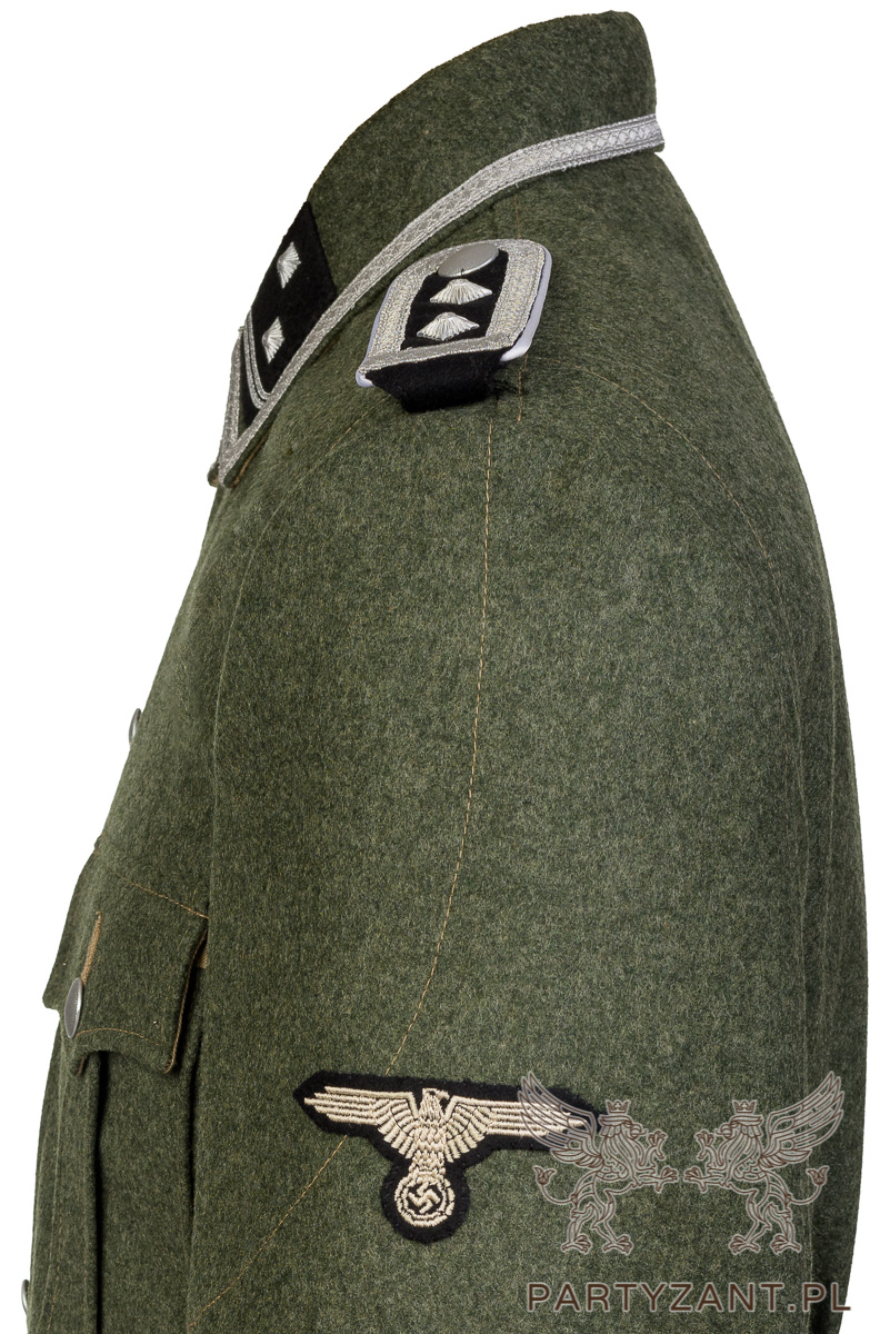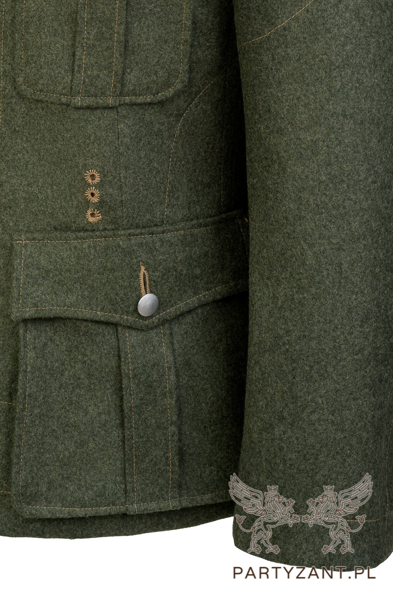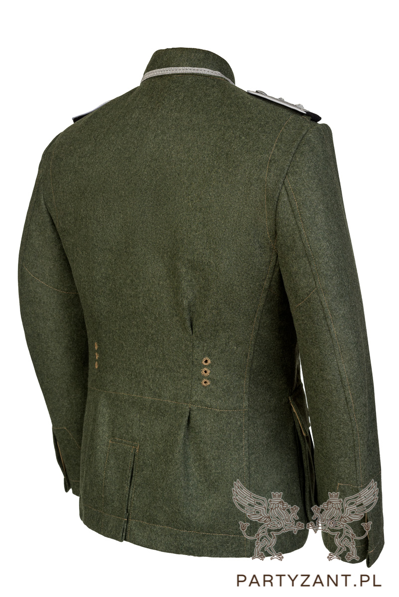 - Materiał: sukno w kolorze feldgrau (sukno oraz nici wyprodukowane na nasze zamówienie w bawarskiej fabryce produkującej materiały na potrzeby mundurów podczas II wojny światowej)
