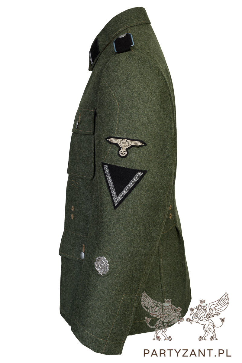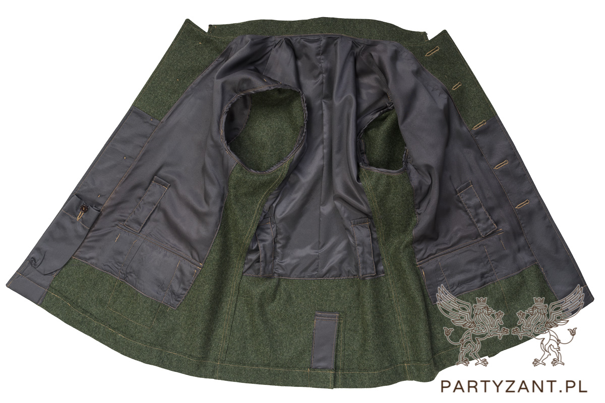 - Materiał: sukno w kolorze feldgrau (sukno wyprodukowane na nasze zamówienie w bawarskiej fabryce produkującej materiały na potrzeby mundurów podczas II wojny światowej)