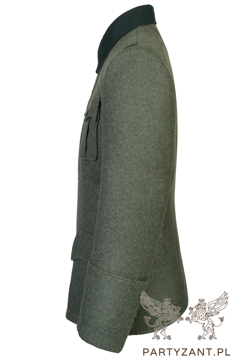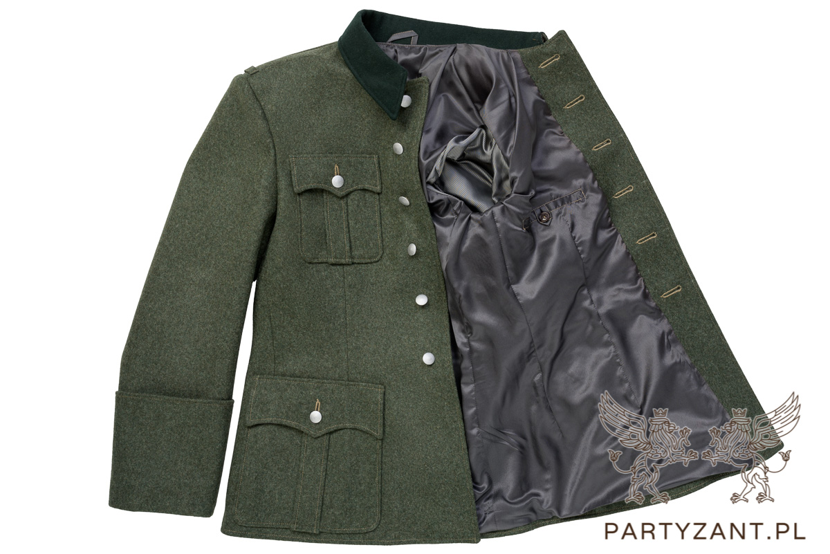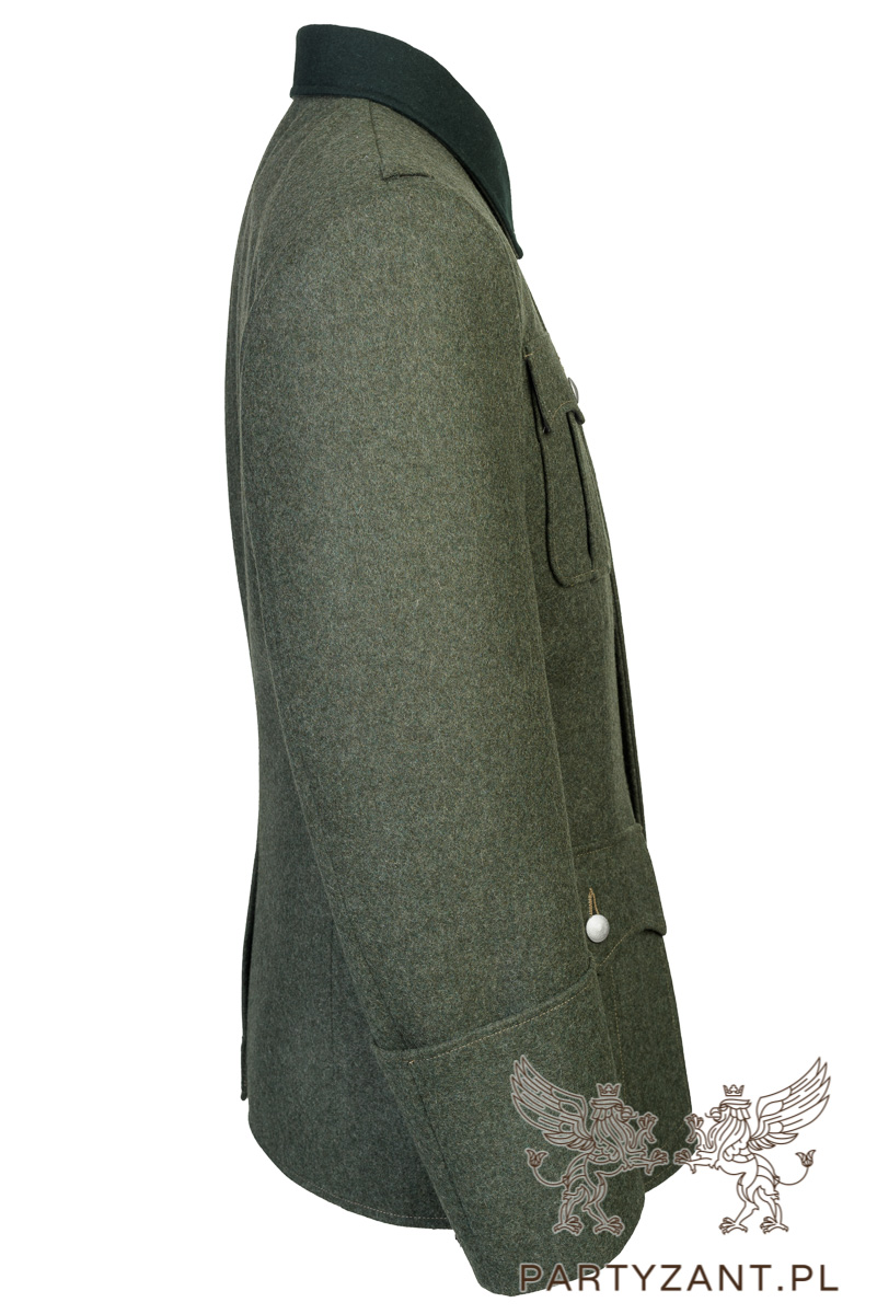 - Materiał: sukno w kolorze feldgrau (sukno oraz nici wyprodukowane na nasze zamówienie w bawarskiej fabryce produkującej materiały na potrzeby mundurów podczas II wojny światowej)