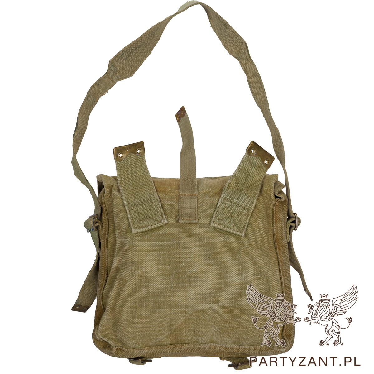Materiał: Wytrzymałe płótno canvas (tkanina bawełniana/jutowa), typowe dla brytyjskiego wyposażenia z okresu po II wojnie światowej, często w kolorze khaki/oliwkowym.