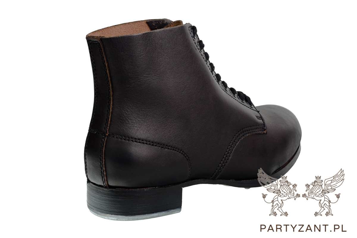 Trzewiki wykonane w całości z czernionej skóry bydlęcej.