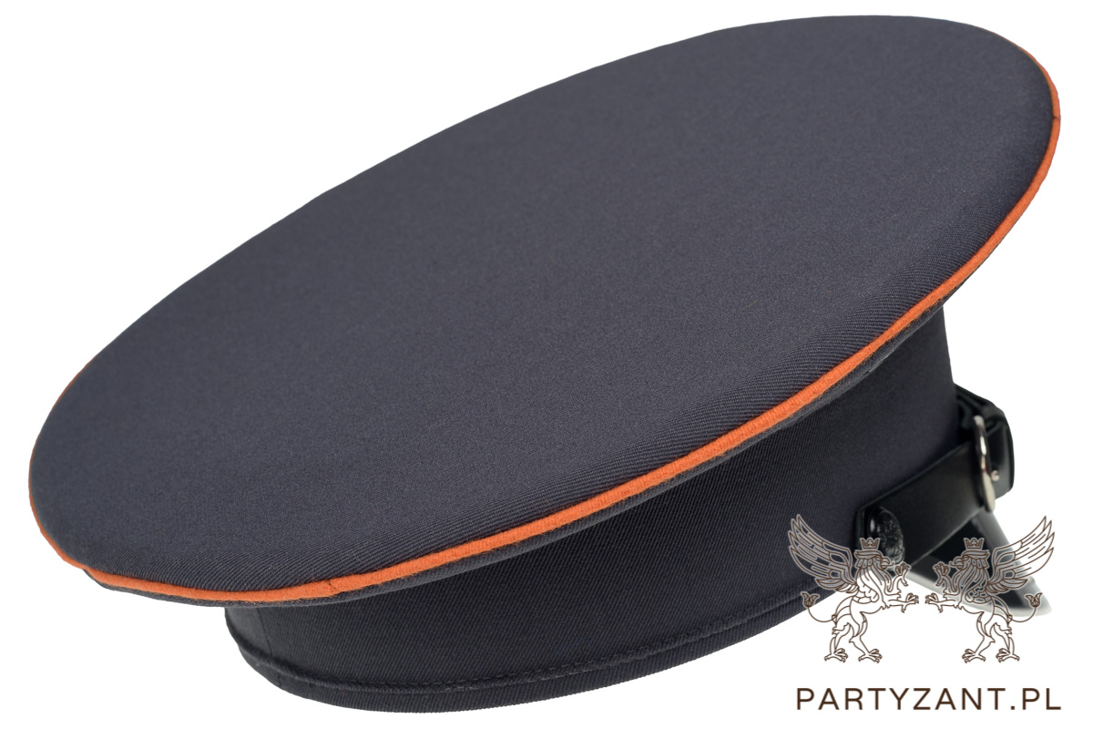 - Daszek z czarnej lakierowanej skóry, okuty srebrną obręczą