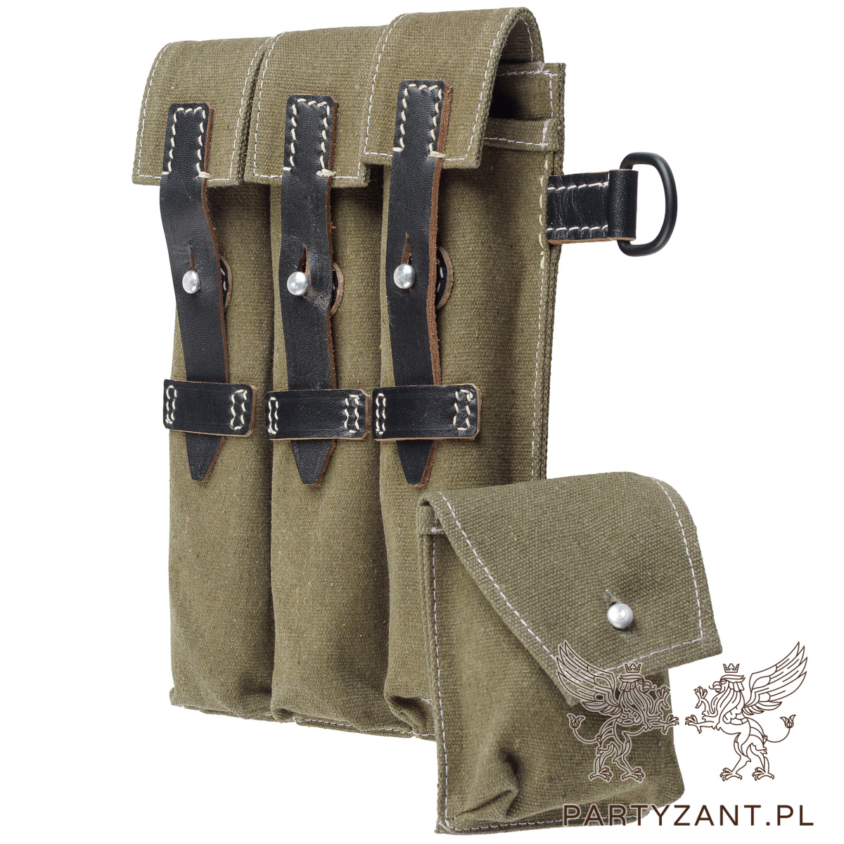 - 6 magazine pouches and one small canvas pouch which holds the tool used to load cartridges into each MP 38/40 magazine.
