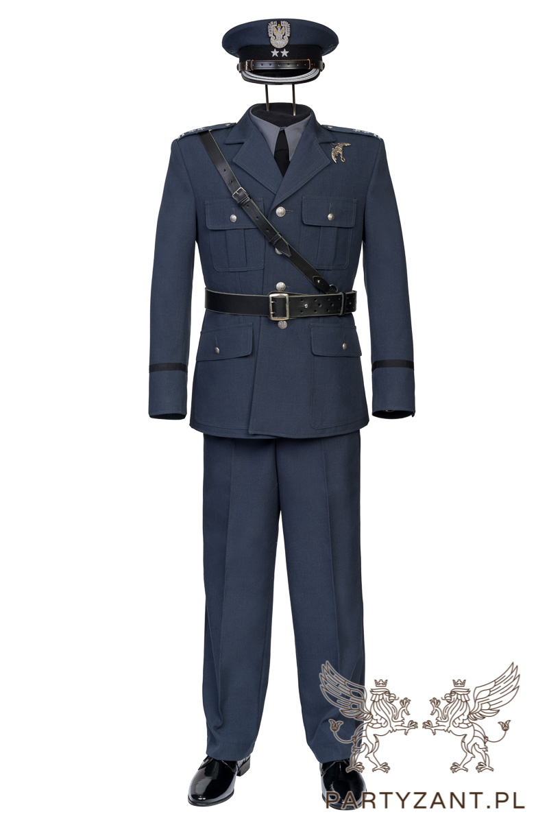- Mundur wykonany z szewiotu (gabardyny)w kolorze stalowoniebieskim.