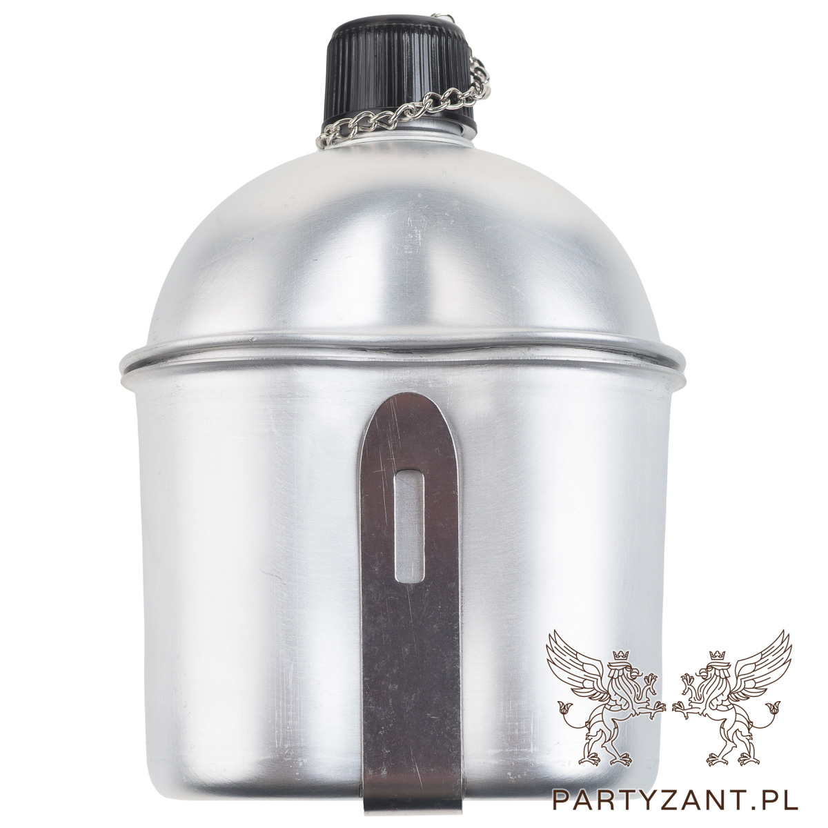 Manierka jest wykonana z lekkiego aluminium, co zapewnia jej funkcjonalność i autentyczny wygląd. Posiada nakrętkę, która jest połączona z korpusem za pomocą małego łańcuszka, co zapobiega jej zgubieniu na polu walki.