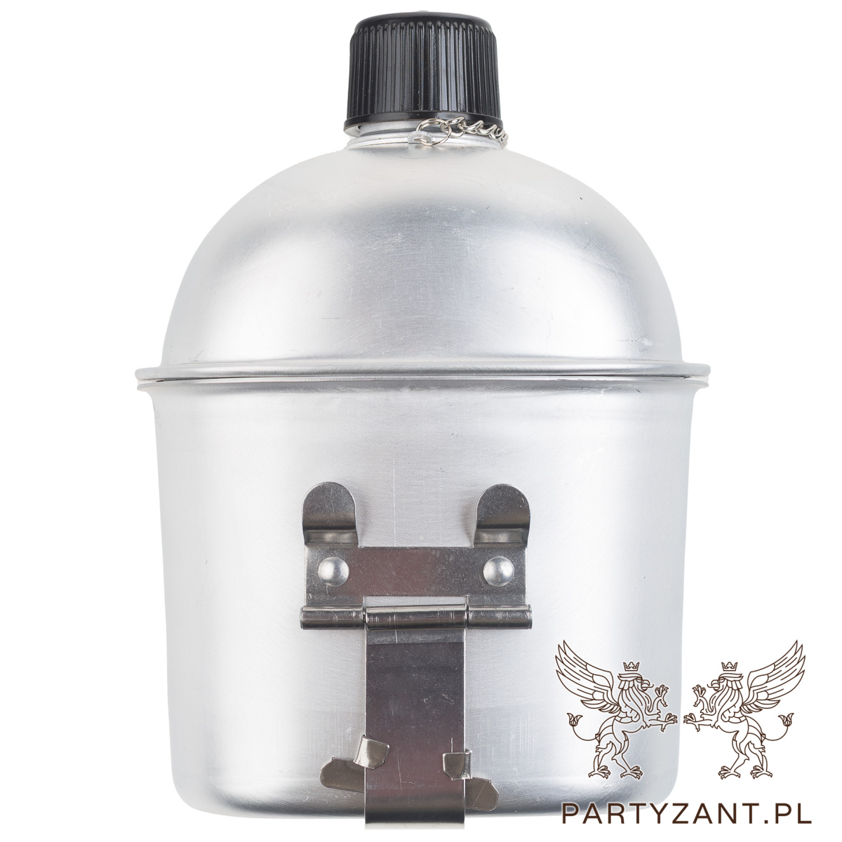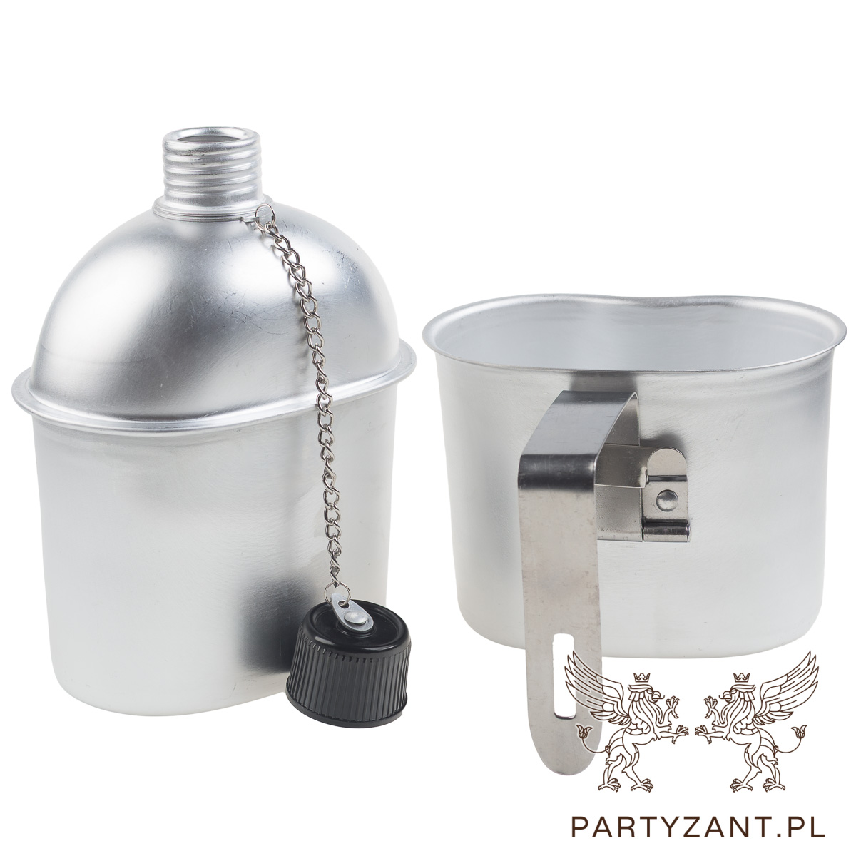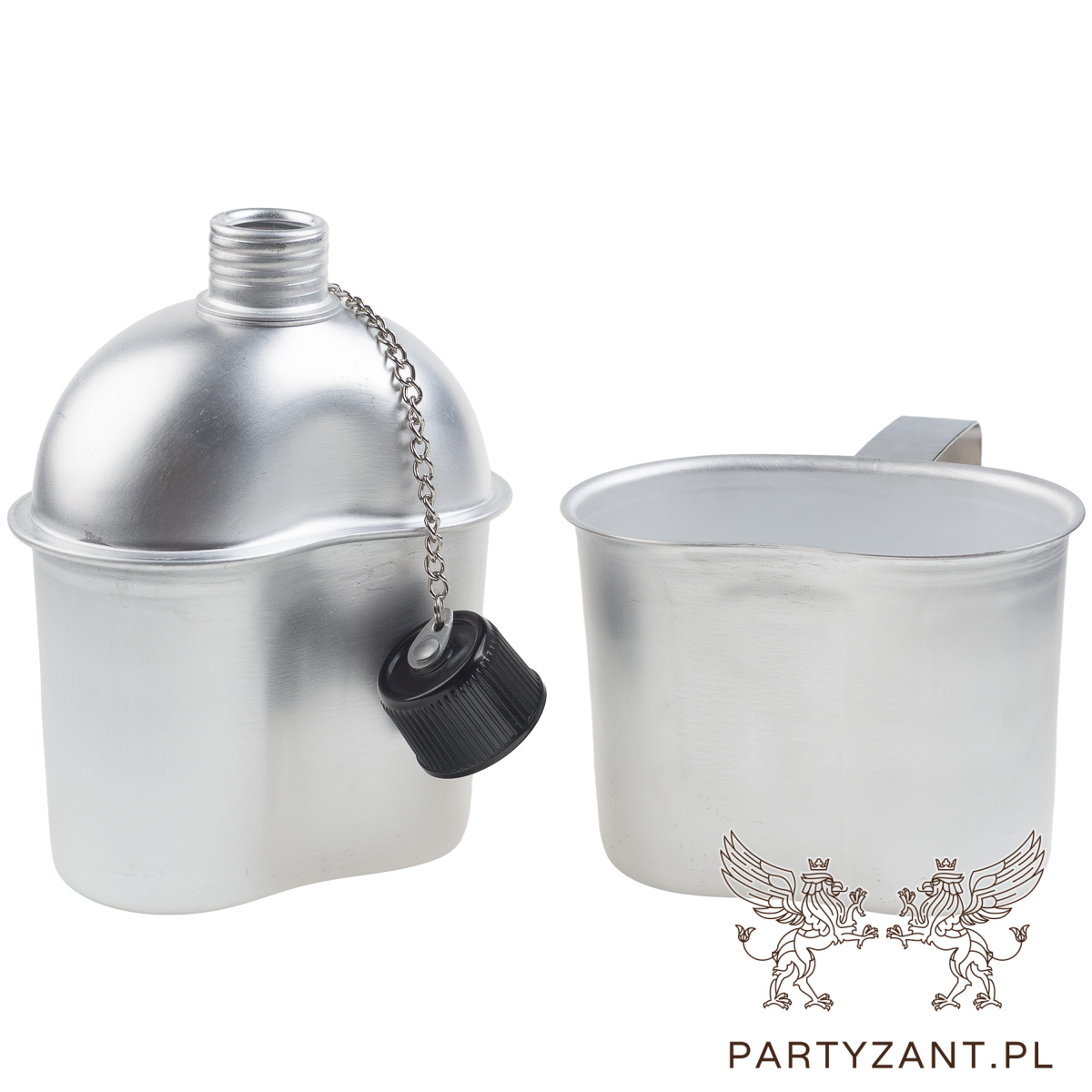 Manierka jest wykonana z lekkiego aluminium, co zapewnia jej funkcjonalność i autentyczny wygląd. Posiada nakrętkę, która jest połączona z korpusem za pomocą małego łańcuszka, co zapobiega jej zgubieniu na polu walki.