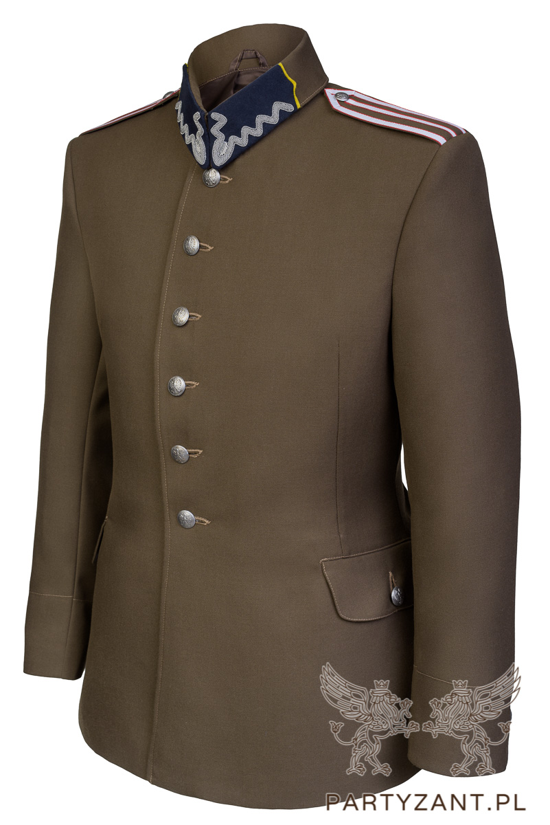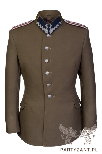 It should be noted that this particular uniform tunic is modeled on a custom made uniform of the time, not on the regulation tunic wz.27. There are several differences between this tunic and the regulation career NCO uniform tunic.