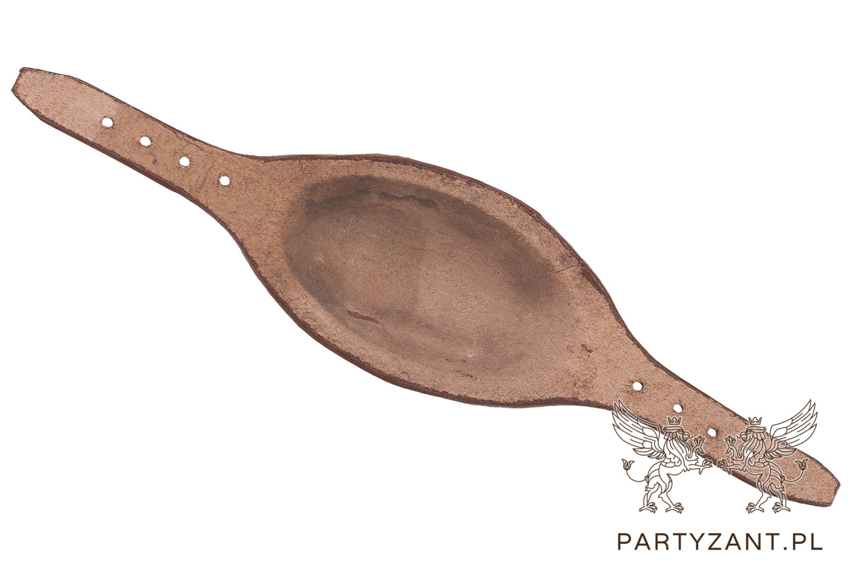 Pasek jest dostosowany do specyfikacji historycznych, łącząc autentyczny wygląd z funkcjonalnością. Jego całkowita długość to 25 cm, a szerokość paska zapinającego wynosi 10 mm. Wypukły, owalny element, widoczny na zdjęciach, zapewnia dodatkowy komfort i stabilność, dokładnie tak jak w oryginale.