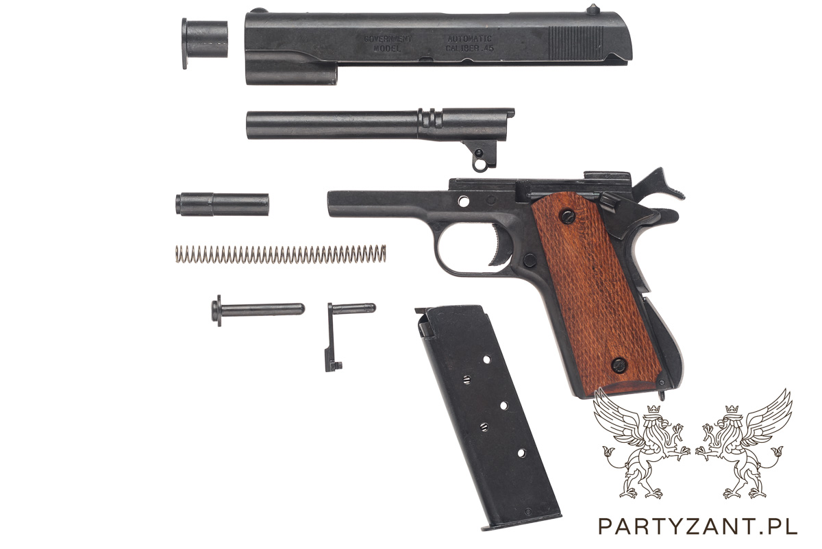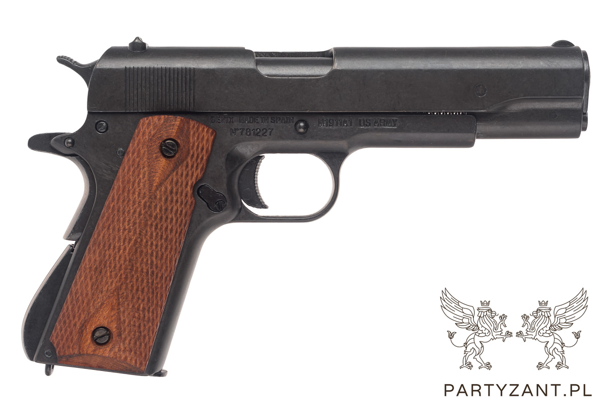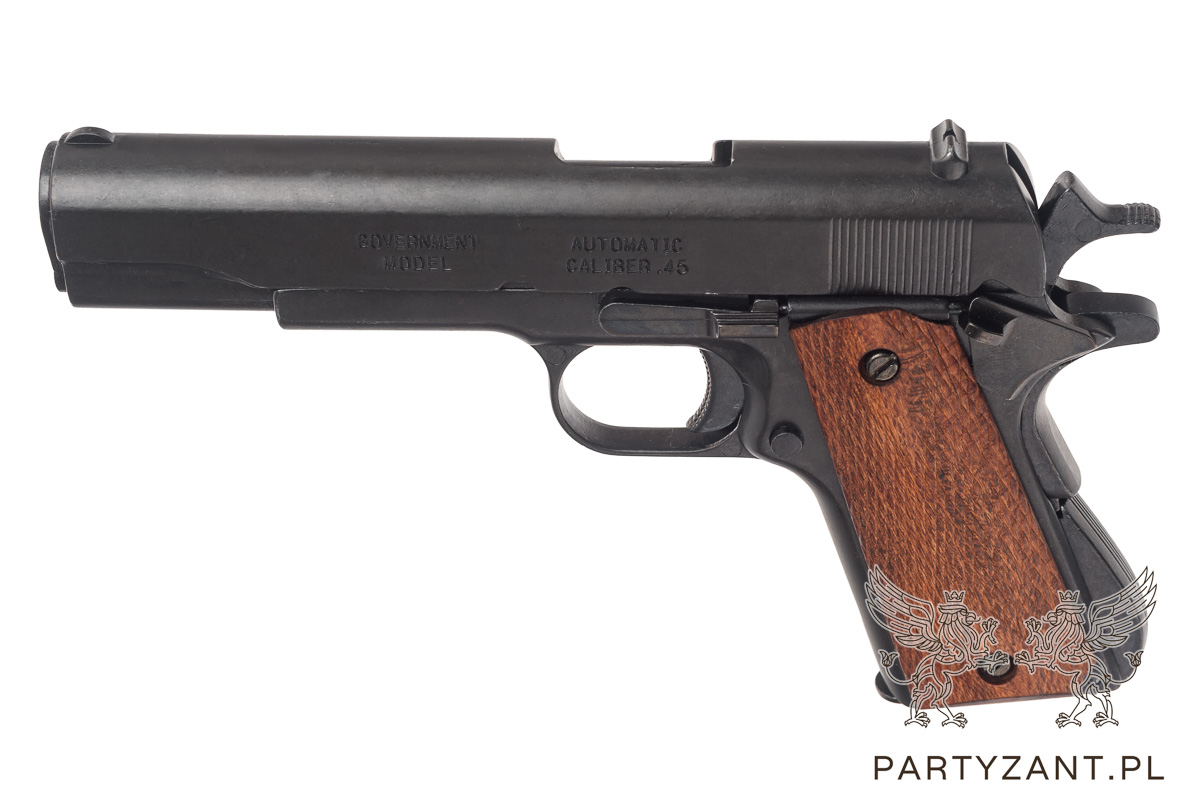 Pistolet Colt m1911, wykonany z metalu i drewna, waga 0,92 kg długość 24 cm
