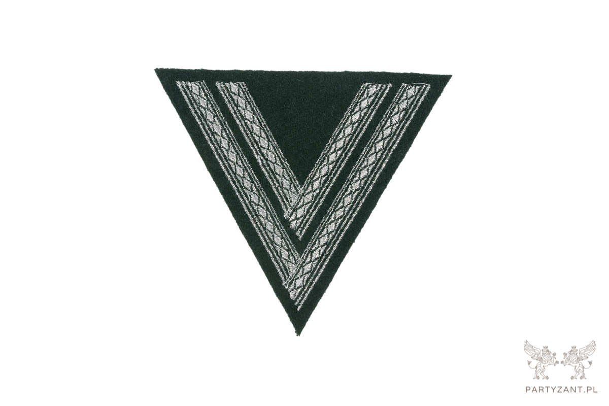 - Chevron embroidered on dark green uniform wool